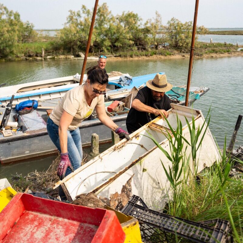 Avec le projet Respira Barena, l’association entreprend de nettoyer la lagune des déchets accumulés au fil des années : filets fantômes, plastiques, verre, métal, appareils électroménagers, moteurs abandonnés. « C’est un travail qui nous rend heureux, car nous voyons de nos propres yeux comment les zones libérées recommencent littéralement à respirer et à se couvrir de plantes et de vie », raconte Zurfluh.