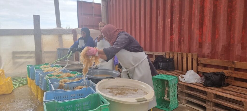 « La ventaja de Túnez es el clima, con sol prácticamente todo el año y viento, que nos permite secar naturalmente las algas » añade Mounir Boulkout. El proceso de blanqueamiento del alga, garantía de calidad para los clientes, también se realiza mediante oxigenación. « A veces, según el grado de blancura exigido por el cliente, lavamos varias veces el alga con agua de mar y la volvemos a secar hasta obtener el blanco deseado » explica Mounir.