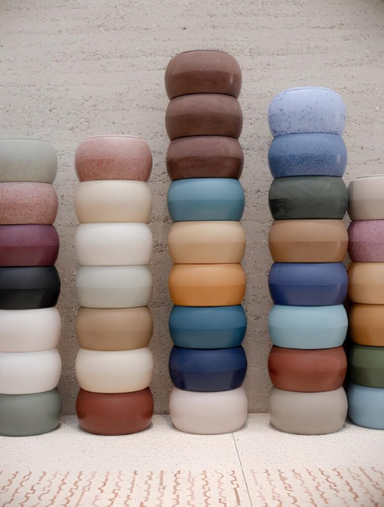 Na kraju, deset materijala iz lokalnih resursa, otpada iz poljoprivrede i građevinarstva je odabrano: suncokret, rižina slama, betonska prašina, pločice, pijesak iz Tarascona ili čak glina iz Vallabrègues. Glina i njene primjene dobar su primjer pokrenutog pristupa: za pločice kao i za žbuku koja, pomiješana s rižinom slamom, daje prozračan, protupožarni materijal koji regulira atmosferu, prigušuje buku. Dovoljno za oblaganje i izolaciju opeke od sirove zemlje od koje su zidovi zgrade.