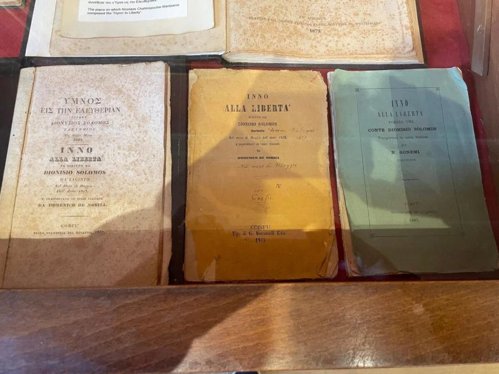Sveta se odvija, spodaj, v neprekinjenem toku, po ulici Arseniou, on pa ostaja v tej hiši, ki se dotika Jonskega morja, kjer je bival med leti 1832 in 1857. Izvira z otoka Zante, izobražen v Italiji, jeziku svojih prvih literarnih besedil, Solomos je glas grškega bitja. Ne v čistem jeziku, ki ga zavrača, ker pozablja ali zaničuje ljudske govore, ne, to je jezik, ki nosi dih, globoko željo po ponovnem povezovanju s tem, kar je prišlo iz antične Grčije, ne da bi jo kdaj zamrznili v mitološkem modelu, ki ne obstaja več. Ta « Himna svobodi », ki jo je napisal Solomos in jo je skomponiral Nikolaos Chalikiopoulos Mantzaros, lahko trenutno odkrijemo v rokopisu v Mestni galeriji Korfu, ki je v visečem vrtu, ob vznožju beneške trdnjave, ki dominira nad starim mestom.
